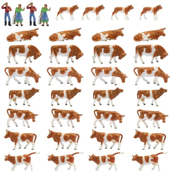 牛模型 ウシ模型 人間 人形 人物 1:87 36本入り 養殖場 牧場 牛場の建築用ウシ形モデル 庭 マイクロ風景 情景コレクション 装飾 レイアウト・ジオラマ・教育・DIY