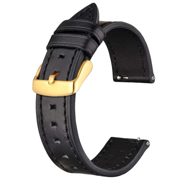 (BISONSTRAP) レザー時計バンド 22mm Quick Release ビジネススタイル本革腕時計ベルト ブラック/ゴールドバックル