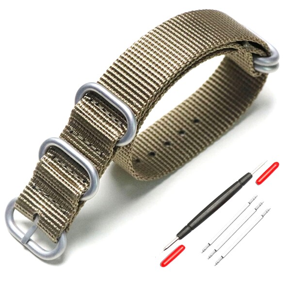 (XYTYJQ) for 時計バンド NATO 用タイプ 時計ベルト 時計バンド ナイロン 替えベルト 18mm 20mm 22mm 24mm 腕時計 バンド プレミアム ナイロン 替えベルト (交換工具 バネ棒付 24mm カーキ色 シルバ