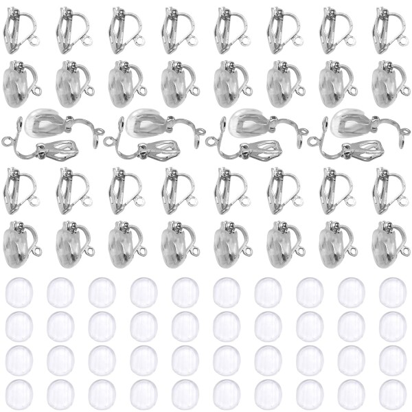 ピアス イヤリングコンバーター ジュエリー40個と痛み止めパッド40個 手芸 手作り用 パーツ イヤリング 耳穴なし (三角耳かき シルバー)