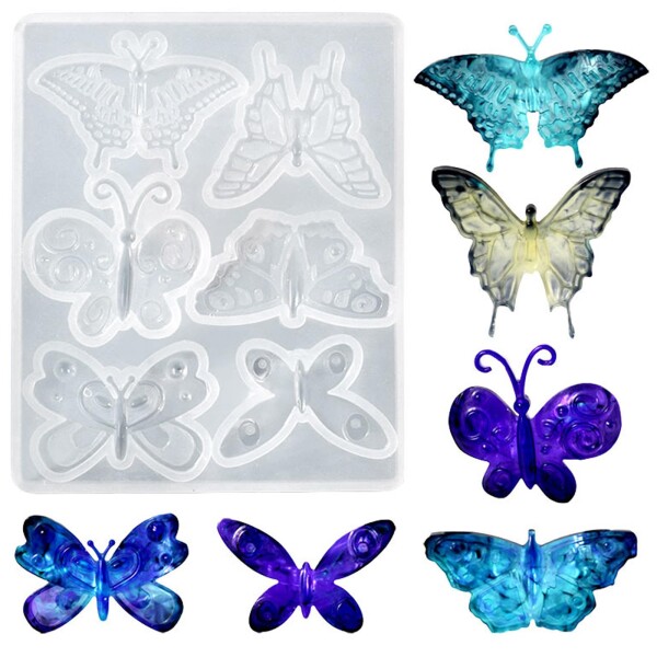 5WYOUKE シリコンモールド 蝶の形 6種類 キーホルダー ペンダント イヤリング ブローチ ブレスレットバッグの装飾 吊り下げ穴付き樹脂型 樹脂 UVレジン ジュエリーDIY 手芸 樹脂型 モールド