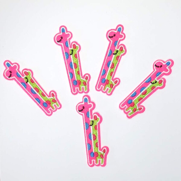 ワッペン アイロン 刺繍 おしゃれ アップリケ 保育園 幼稚園 などの目印に使いやすい 5枚セット (キリン)