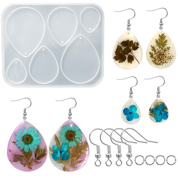 5WYOUKE 水滴 イヤリングモールド シリコンモールド レジン モールド 水滴型 イヤリング 金具付き 穴あけ サイズ違い エポキシ樹脂 手作り ペンダント ジュエリーモールド ピアス DIY 小さ