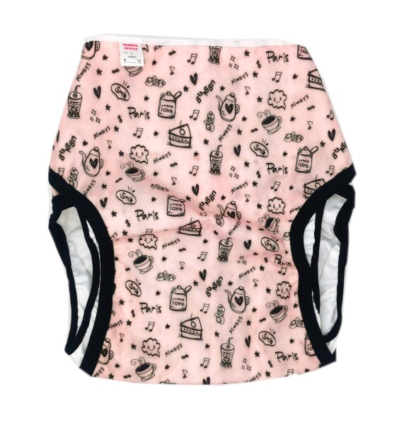 (ママミッケ) おむつカバー 股おむつ 大人用 かわいい マジックテープ サイズ調整 快適 防水加工 (ピンク色、ケーキ, L)