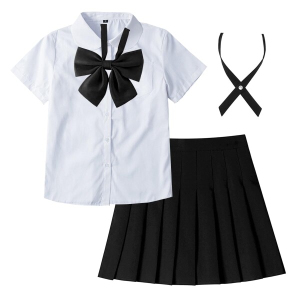 (SYRHSYB) コスプレ 制服 セット jkスカート 丈48cm 4点セット 女子学生服 上下セット 半袖 丸襟 長袖 白いシャツ+蝶結び+クロスタイ+チェックスカート 写真撮影 パーティー衣装 遊園地
