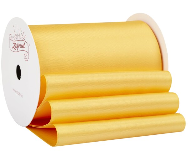サテンリボン幅100mm x 9m巻 - 手芸、ラッピング、 花束、ウェディングに最適 (イエローゴールド)
