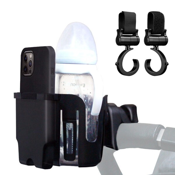 MMSH ベビーカー ドリンクホルダー スマホホルダー ベビーカーフック2個付き 哺乳瓶ホルダー ベビーカー用カップホルダー