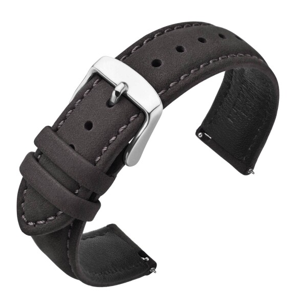 (ANNEFIT) 本革時計バンド 20mm Quick Release ヌバックレザー腕時計ベルト ダークグレー/シルバーバックル