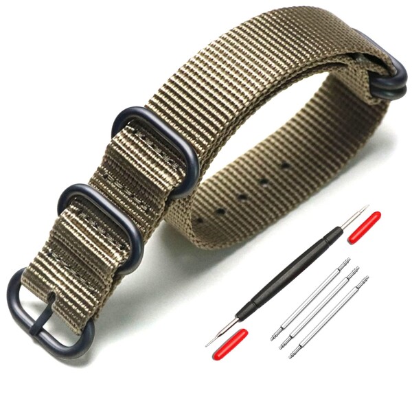 (XYTYJQ) for 時計バンド NATO 用タイプ 時計ベルト 時計バンド ナイロン 替えベルト 18mm 20mm 22mm 24mm 腕時計 バンド プレミアム ナイロン 替えベルト (交換工具 バネ棒付 24mm (カーキ色 ブラッ