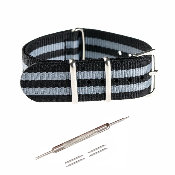 (Jumpsunfun) NATOベルト 20mm 時計ベルト ナイロン ミリタリー時計バンド 腕時計替えベル 黒灰(交換説明書 交換工具 バネ棒付)