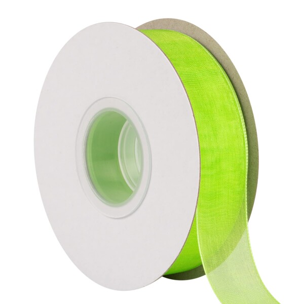 オーガンジーリボン 幅25mm 長さ45M 手芸 DIY 花束 ヘアアクセサリー ギフトラッピング ウェディングデコレーション # アップルグリーン