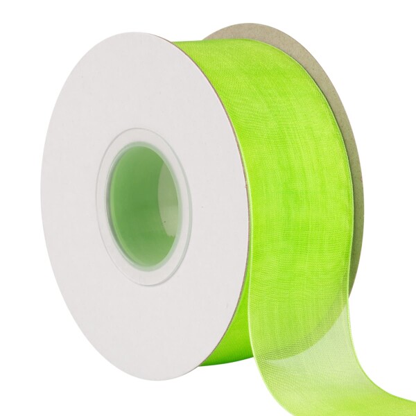 オーガンジーリボン 幅38mm 長さ45M 手芸 DIY 花束 ヘアアクセサリー ギフトラッピング ウェディングデコレーション # アップルグリーン