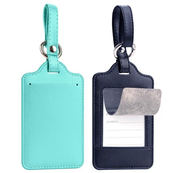 [2枚セット] 荷物タグ ネームタグ - スーツケースタグ 紛失対策 名前ラベル IDカード用 社員証 レザー バッグ用ネームタグ ビジネス 防塵 番号札 出張用 旅行 軽量 Migeec (グリーン+ネ