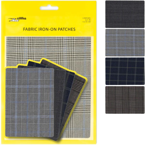 ZEFFFKA プレミアム品質 格子縞生地 テキスタイル 装飾的 アイロン接着パッチ モダン クールなデザイン 4ピース 100%コットン修理キット ジーンズやその他の衣類用 5インチ×7インチ (13cm x 18cm)