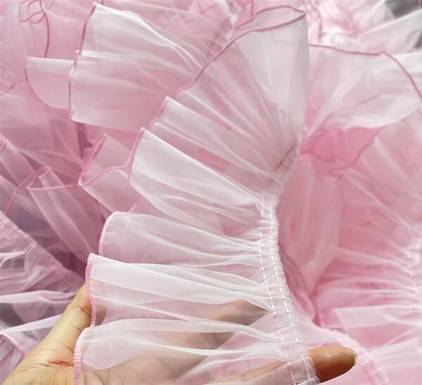 幅10cm 長さ4.5m オーガンジー フリル 生地 かわいい プリーツ リボン 黒 白 紫 レース シースルー 透け 装飾 衣装 コスチューム ハンドメイド ドレス 創作 社交 ダンス ヒップホップ 舞台衣