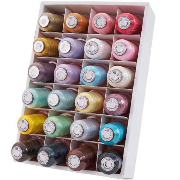 カラー:白、 黒、 べージュ、 グレー、 水色、紺色、パープル、ブルー、黄色い、 ライトピンク、ブラウン、グリーン、赤などのミシン糸 24色 セットとなりる高品質なマルチカラー ミシン糸です。