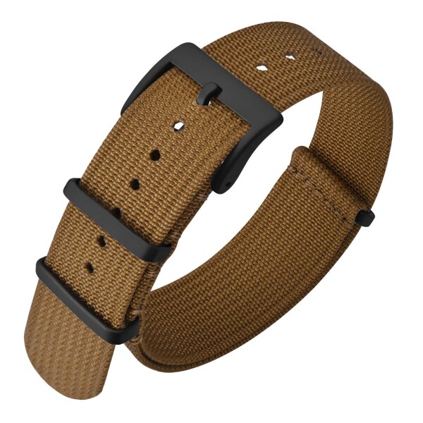 (ANNEFIT) 時計ベルト 22mm 一本通しナイロン時計バンド ミリタリー腕時計替えバンド ブラウン/ブラックバックル