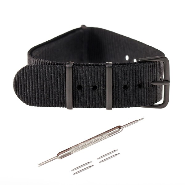 (Jumpsunfun) NATOベルト 18mm 時計ベルト ナイロン ミリタリー時計バンド 腕時計替えベル ブラック(交換説明書 交換工具 バネ棒付)