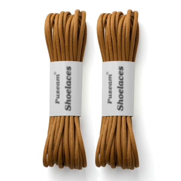 (Puzeam) 靴紐 革靴 細い 蝋引き 靴ひも 卓越した品質の編み上げワックスシューレース 3MM 丸紐 2足分(4本) ライトブラウン-120cm