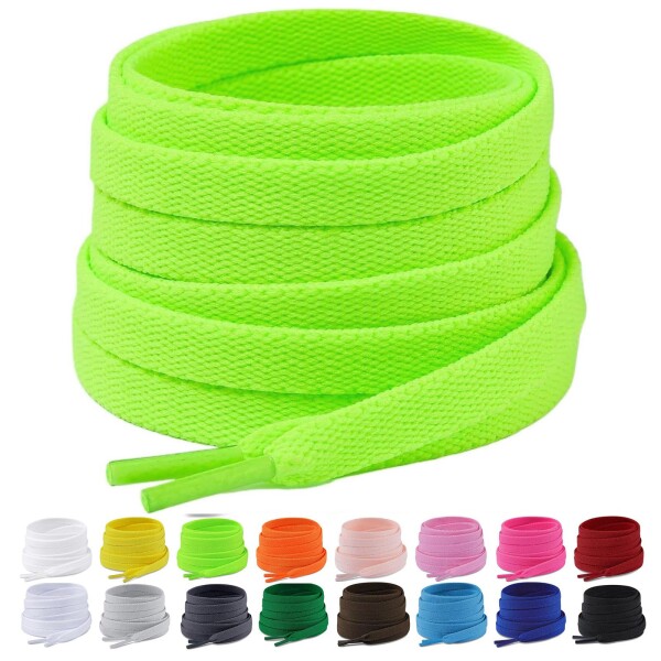 (Puzeam) 靴紐 スニーカー紐 加厚で滑りにくく、緩みにくいの靴ひも 8mm幅 平紐 ブーツ 紐 バッシュシューレース 2足分(4本) ネオングリーン-180cm