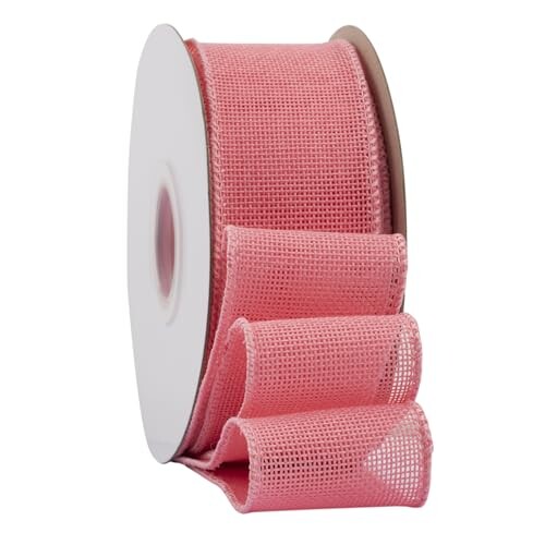 幅50mm バーラップワイヤーリボン 長さ18m ギフト包装、蝶結びの作り方、ナチュラルなウェディングの装飾、クリスマスツリーの飾りに最適 #150ピンク