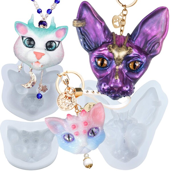 FUNSHOWCASE 3D スフィンクス猫 悪魔猫 角付き シリコンモールド レジン型 ハロウィン 角が生えた猫 3点セット チャーム ストラープ アロマストーン エポキシ樹脂 石鹸 石膏 ワックス