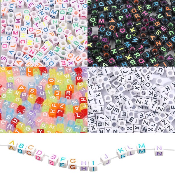 ビーズ アルファベットビーズ アルファベット 4つのスタイル各100個 カラフル キューブ型 6x6mm アルファベット柄 自由に組み合 材料 DIY用 ハンドメイドアクセサリー 手工芸品 ジュエリー