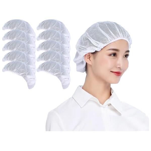 (Maifunn) 衛生キャップ 10枚セット 帽子 キッチン 衛生帽 給食帽 料理 飲食 派手 無地 上品 快適 業務用 髪 ネット ホワイト MZ8021-White 10