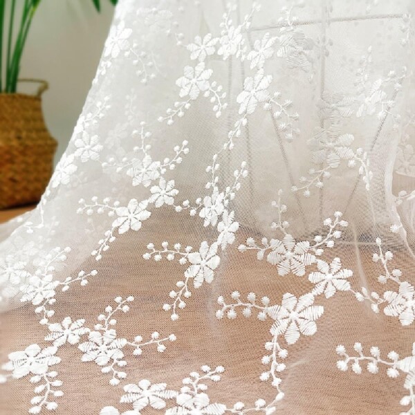 【おすすめ理由】 半透明のレース生地に白い花柄の刺繍が施されており、とても繊細で可愛いデザインです。 適度な透け感と柄の重なりが立体感を生み出し、上品な印象を与えます。 アクセサリーとして使用すると、ゴージャスなドレスが完成します。 生地はシルクのように柔らかく、手触りが良く、肌に優しいです。 通気性、吸湿性に優れており、ドレスや夏服などに最適です。