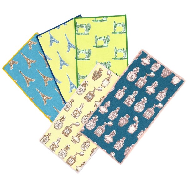 【裏地抗菌タイプ キッズハーフハンカチ5枚/アンティークセット】(ミシングリーン・エッフェル塔ブルー・エッフェル塔イエロー・香水イエロー・香水ブルー)