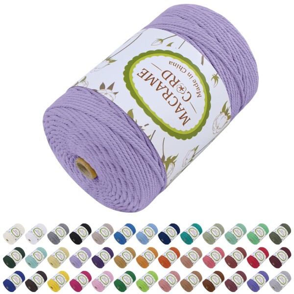 LEREATI マクラメロープ 3mm x 300m, マクラメ 糸 コットン マクラメ 紐 天然綿糸, 綿ロープ の場合 DIY, 壁掛け、夢キャッチャー、鉢植え装飾, 編み物, ボヘミア結婚式アーチの装飾 (パープル)