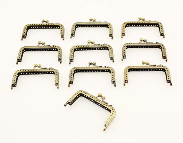 アンティークゴールドカラーがおしゃれな、角型のがま口口金10個セットです。