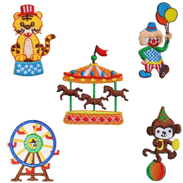 XUNHUI ワッペン 観覧車 サーカス道化師猿メリーゴーランド かわいい 女の子 男の子 ワッペン アップリケ アイロンシール 5枚