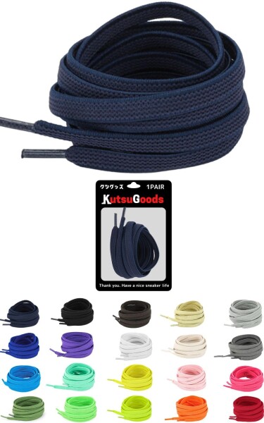 (KutsuGoods) クツグッズ (脱ぎ履き簡単) 伸びる靴紐 ゴム 平紐 イージーシューレース 100 120 140 160cm ハイカット 子供 白 黒 スニーカー (ネイビー, 140cm)