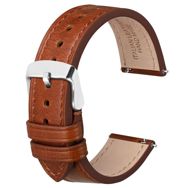 (Anbeer) 時計バンド 18mm イタリアンレザー 腕時計ベルト Quick Release オイルワックス 本革 替えバンド ステンレススチール尾錠