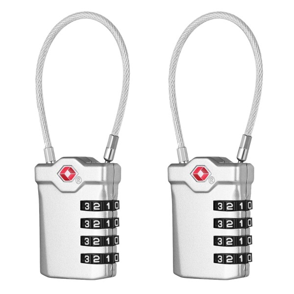 NAGE ダイヤル 鍵 4桁 ワイヤーロック 旅行 暗証番号 盗難防止 TSAロック 南京錠 荷物 キャリーケース リュック バッグ 海外旅行用 空港 検査 (シルバー,2個)