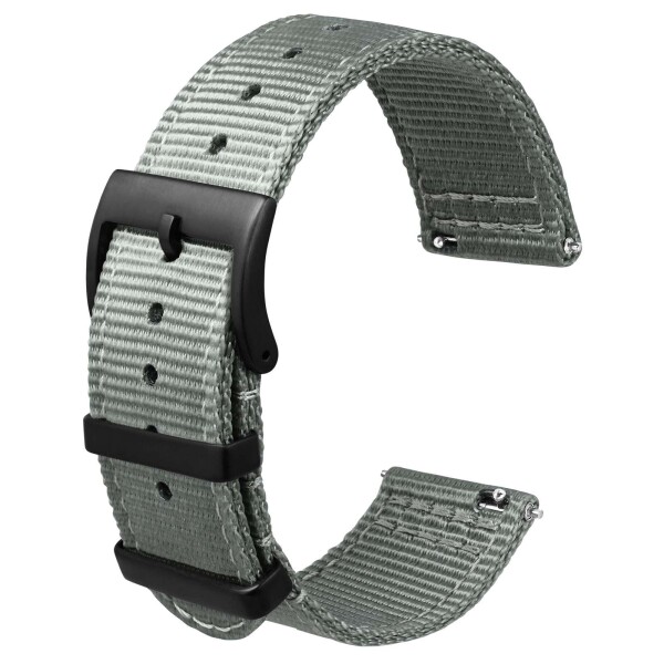 (Anbeer) 22mm 時計バンド ナイロン ツーピース式 クイックリリーズ替えベルト メタル製ループ付き グレー ブラックバックル