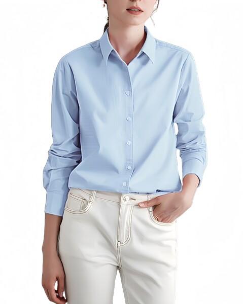 (YASHIGE) ノーアイロンワイシャツ レディース 長袖 形態安定 ブラウス ビジネス オフィス スーツ カジュアル ゆったり 大きいサイズ 事務服 通勤 速乾 高通気性 水色 2L