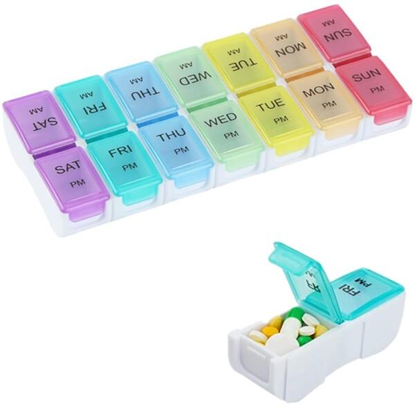 1日2回、1週間分のお薬・サプリメントを収納できます。毎日のクスリ・サプリの飲み忘れ防止に便利です。朝夕色分けされたお洒落なデザイン。2色からお選びいただけます。
