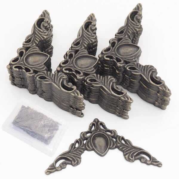 sempiterno 30個 亜鉛合金 コーナー装飾金具 プロテクター ボックスコーナー飾り アンティーク 台座 フォトフレーム 木箱装飾 透かしパーツ コーナー用 トライアングル ブロンズ DIY 手芸 (
