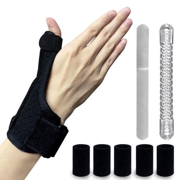 【仕様】親指と手首一体型サポーターです。内臓用金属プレート2本(硬い/柔らかい)で、左右兼用、サイズ調整可。ほかの指のサポーターを考えて、指用のサポーター5個付属。セット内容:サポーター本体、金属プレート2本(硬い/柔らかい)、指用のサポーター5個