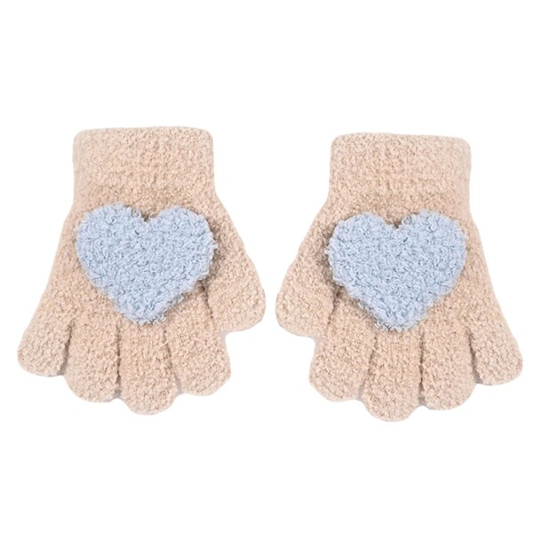 (Tidyworm) 子供 手袋 可愛い ハート ベビー 手袋 5本指 赤ちゃん 手袋 冬 防寒 キッズ 手袋 ミトン ニットグローブ 女の子 男の子 寒さ対策 雪遊び 通園 通学 1-4歳 (カーキ)