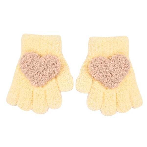(Tidyworm) 子供 手袋 可愛い ハート ベビー 手袋 5本指 赤ちゃん 手袋 冬 防寒 キッズ 手袋 ミトン ニットグローブ 女の子 男の子 寒さ対策 雪遊び 通園 通学 1-4歳 (イエロー)