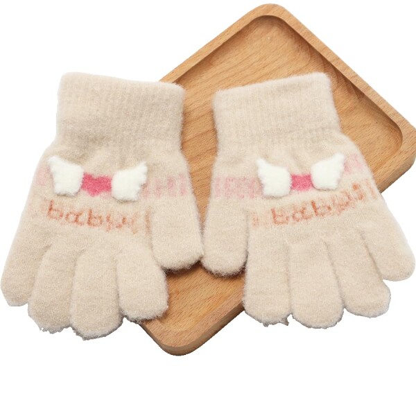 (HOLRAFAN) 女の子 キッズ 手袋 子供用 2-6歳 幼児 児童 グローブ 人気 5本指 可愛い 保温 プレゼント 通園 通学 保暖防寒 自転車 多色 冬のお出かけ用手袋(A-シャンパン M)