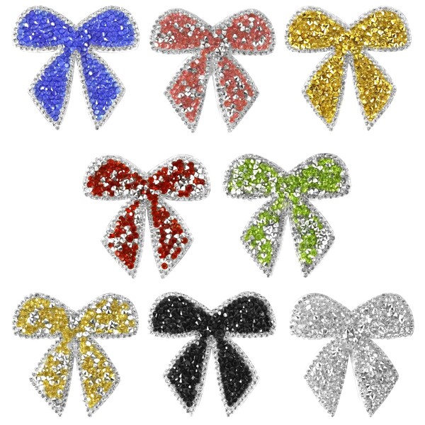 8枚 蝶結び 熱接着ラインストーンシート キラキラ アイロン接着 手芸用 服装飾 かわいい パッチ 6×6cm