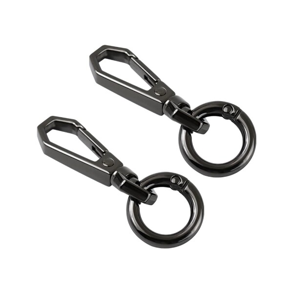 ナスカン キーホルダー 二重リング 2個セット ワンタッチキーホルダー金具 丸型回転フック 丸カン 手作り キーホルダーパーツ アクセサリーパーツ 手芸用品 DIY材料 (ブラック)