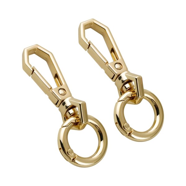 ナスカン キーホルダー 二重リング 2個セット ワンタッチキーホルダー金具 丸型回転フック 丸カン 手作り キーホルダーパーツ アクセサリーパーツ 手芸用品 DIY材料 (ゴールド)