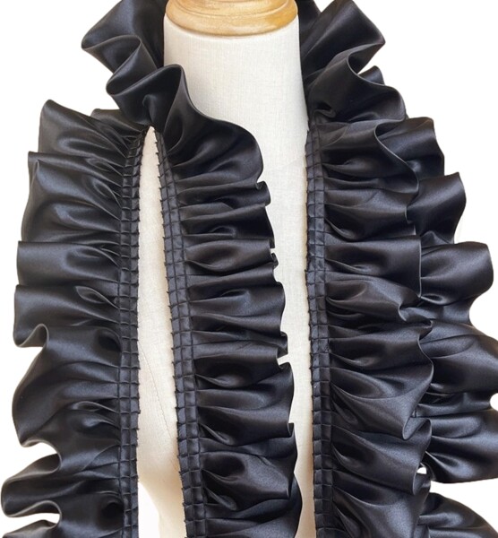 幅8cm 長さ4.5m サテン 生地 フリル かわいい リボン 黒 白 装飾 ウエディング ドレス スカート ロリータ ダンス 衣装 (ブラック)