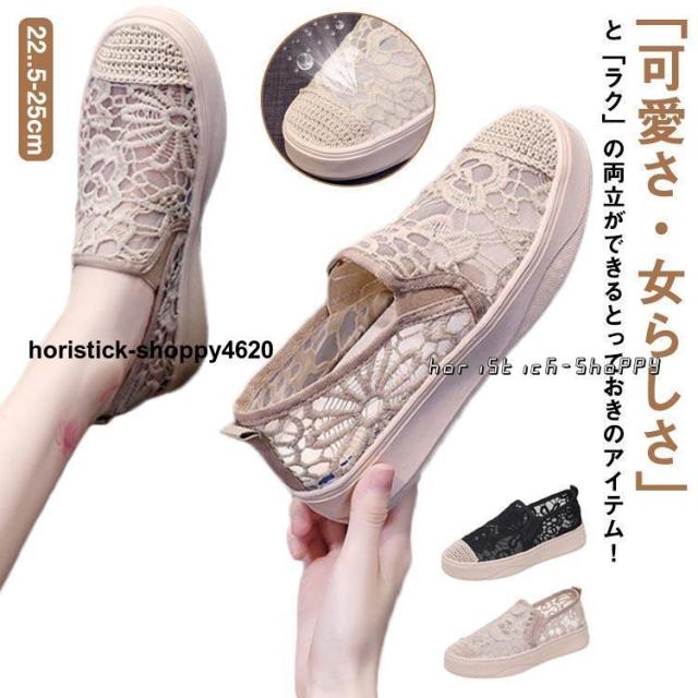 スリッポン スニーカー シューズ ぺたんこ レース レディース 可愛い スリッポン レーススリッポン おしゃれ きれいめ 大人 カジュアル ベージュ