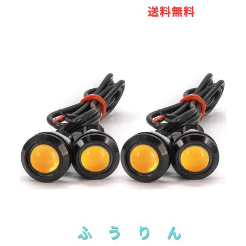 LED デイライト 18mm スポットライト 黄色 ボルト型 大玉計 防水 高輝度 埋め込み型 12V専用 4個セット (イエロー)